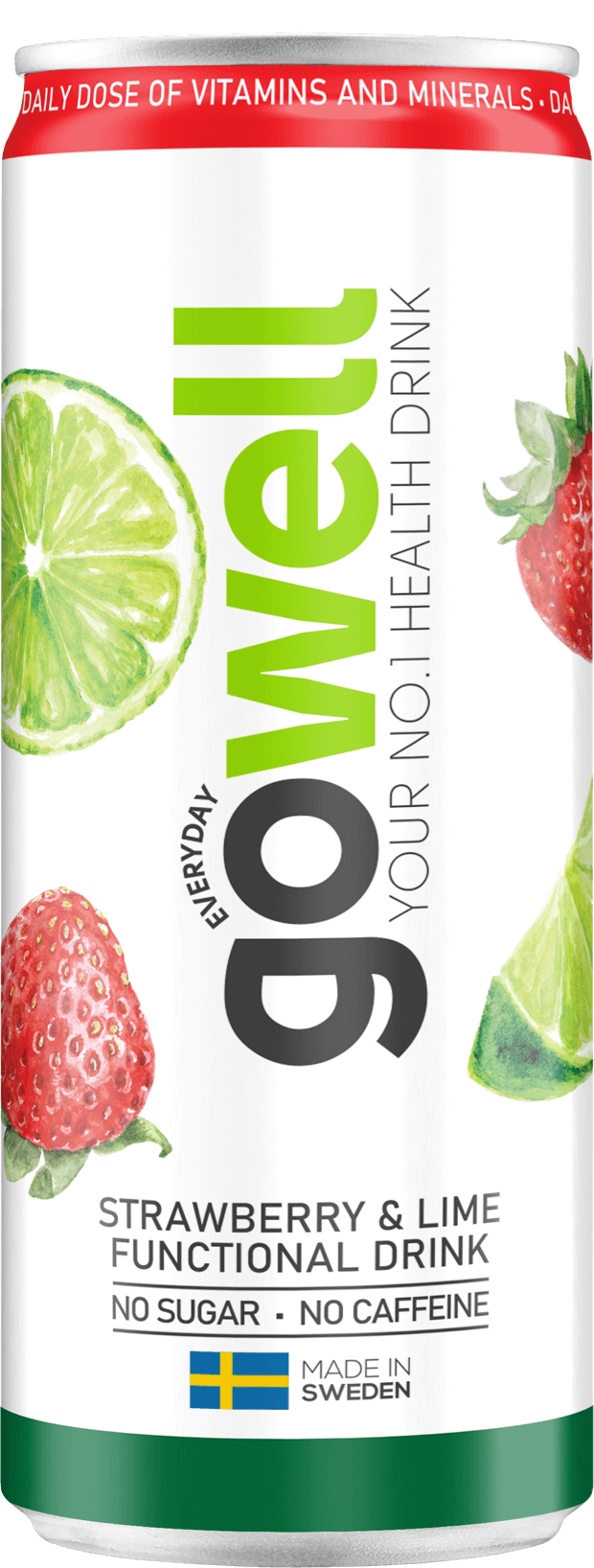 Sparkling functional drink with the flavor of raspberries, strawberries and mint. Sugar and caffeine free. Contains sweeteners. Serve well chilled. Gowell is a sparkling functional drink developed and produced in Sweden. It is brewed on Swedish water. With 100% coverage of most of the 13 essential vitamins, minerals and antioxidants. Gowell is suitable for everyone who chooses the healthier option.